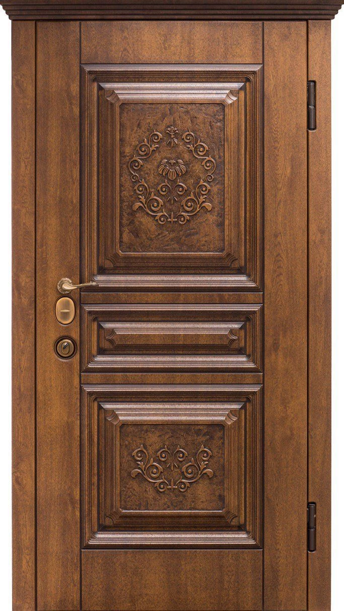 Входные двери. Они сочетают металлический каркас с массивной отделкой, обеспечивая надежную защиту от взлома, а также отличные тепло- и шумоизоляционные характеристики. Варианты массива позволяют добиться солидного и эстетичного внешнего вида, сочетающегося с любым фасадом.