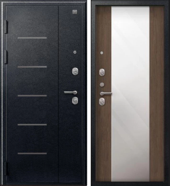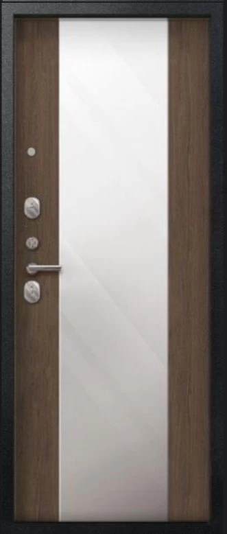 Надежная входная Дверь V-04 Черный муар - Миндаль Зеркало премиум класса по цене 45 283 руб. Большая толщина стали защитит от проникновения в ваш дом, квартиру или коттедж. Используется очень качественная фурнитура: замки, цилиндры, ручки, защелки. Покрытие и отделка двери изготовлено под внимательным контролем производителя. Дверь имеет долгий срок службы и гарантию.